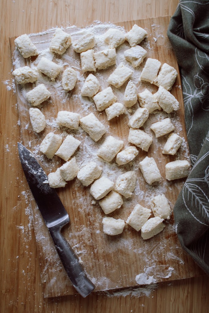 If I needed to choose favourite dumplings, that would be it. The lazy dumplings, leniwe, they take me to my childhood. They are super soft, mild but with a bit of tang, and melt in your mouth type. My grandma often made me those when I was coming back from school. She would ask a question do I want them shaped or just formed with the spoon. I picked the latter, because they would be super soft. One could say they fell apart, but I loved those crumbs from the bottom of the pot. Now, when I make it myself, I go somewhere in the middle; I shape them, but I use very little flour. So if you like your dumplings more sturdy, just add an extra tablespoon of flour.